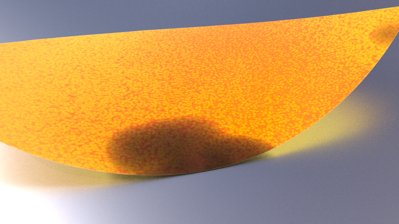주성 님이 제작한 3D 환경 속 나뭇잎은 분명 나뭇잎 특유의 곡선적 형태를 띄고 있지만, 질감과 색은 우리가 아는 나뭇잎과는 사뭇 다릅니다. 이는 단순히 나뭇잎을 3D 환경 속에서 재현하는 것이 아닌, 3D 물질 위에 백합나무 이파리의 성질을 덧입힌 방식으로 제작되었기 때문입니다. 주성 님은 빛과 재질을 탐구하고자 했는데, 식물이 빛을 받았을 때 반사하거나 투과되는 빛의 형태를 세심하게 관찰하여 옮겼습니다. 식물의 잎에 두께나 빛의 강도에 따라 달라지는 잎의 형태와 그림자에 대해 탐구할 수 있었습니다. 진한 녹색의 잎이 낙엽이 되어, 잎의 특정 부분이 타들어가듯이 바스라지는 주성 님의 디지털 나뭇잎은 물질 세계와는 다른 자연의 순환을 경험하고 있을지도 모릅니다.