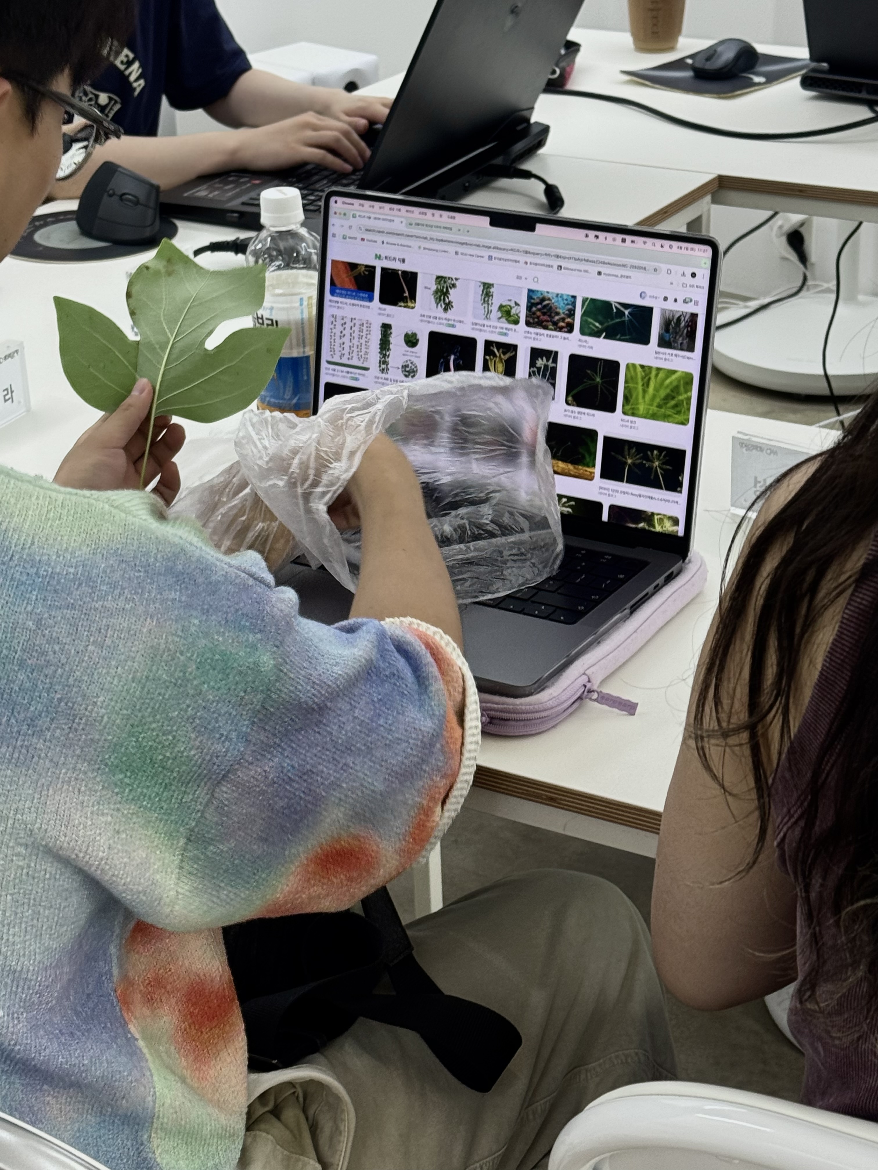 객체지향 존재론의 입장을 유지하며, ‘식물’을 ‘디지털 식물’로 만들어 봅시다. 워크숍에서는 디지털로 재현하고 싶은 물질 중 무늬와 요철에 패턴이 느껴지는 식물(자연물)을 지참해 달라고 요청했고, 참여자들은 각양각색의 자연물을 가져와 소개하는 시간을 가졌습니다. 주성 님과 함께 AAD에 방문한 백합나무 잎을 소개합니다.