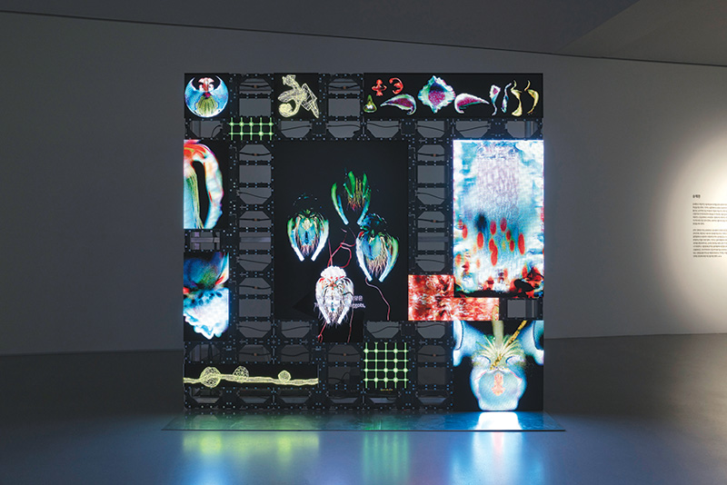 김을지로, 〈시밀리아 시밀리부스 쿠란투르〉, 다채널 LED 패널, 컬러, 사운드, 240.5×258×100cm, 2025, 국립현대미술관 제작지원, 사진: 전석현, LED 패널 제작 및 설치: 트리엠