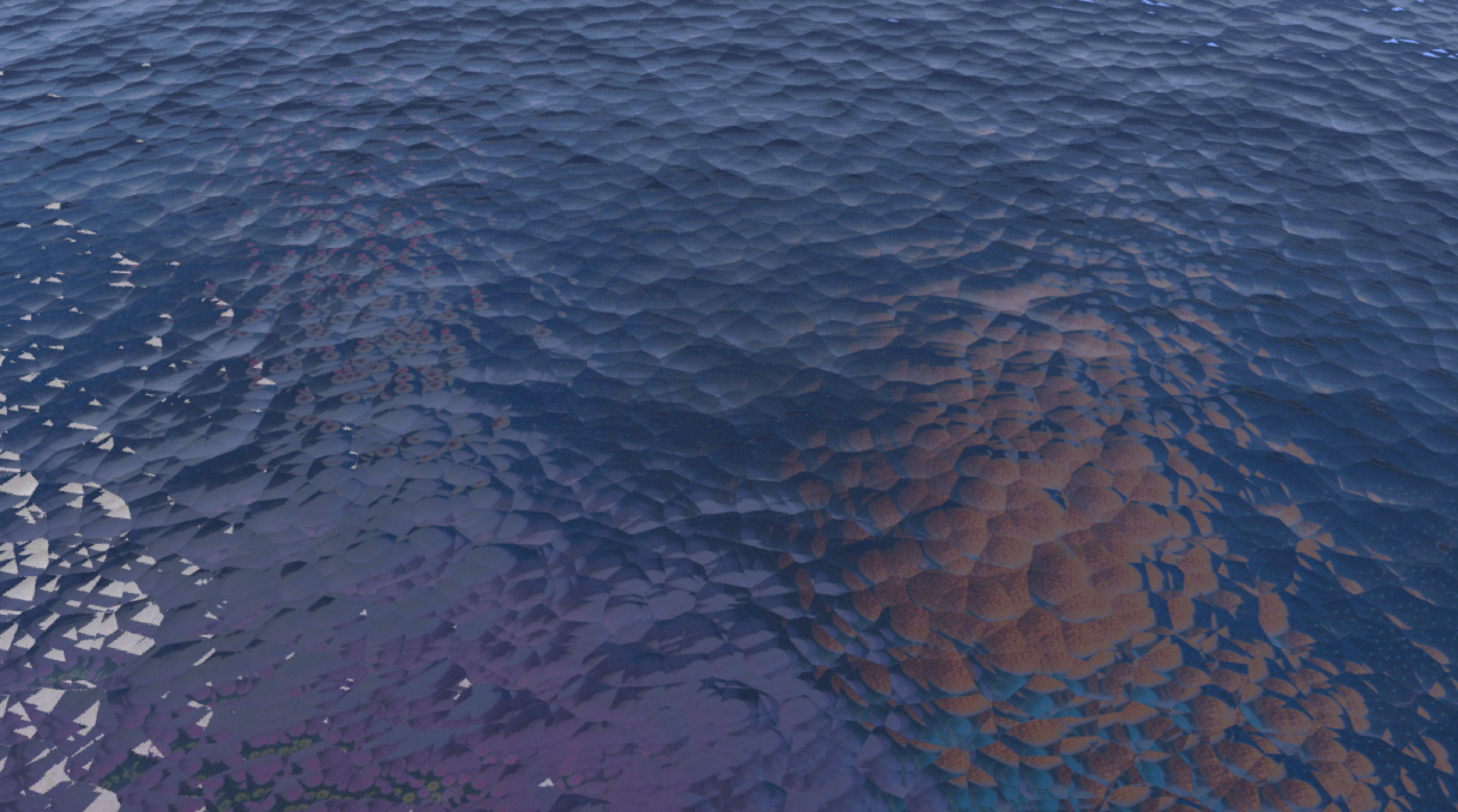 월리 노이즈(Worley Noise) 역시 펄린 노이즈와 함께 자연물을 구현할 때 폭넓게 사용되는 노이즈들 중 하나입니다. 스티븐 월리(Steven Worley)가 제안한 노이즈로, 셀룰러 노이즈(Cellular Noise) 또는 보로노이 노이즈(Voronoi Noise)라고도 불립니다. 펄린 노이즈가 흐릿하고 연속적인 구름이나 연기 같은 질감을 만들어낸다면, 월리 노이즈는 세포 조직이나 자갈, 비눗방울 같은 분할된 구조적 패턴을 표현하는데 적합하며 돌, 균열, 파충류의 피부, 얼룩 등 자연스러운 유기적 질감을 재현하는 데 활용됩니다.
