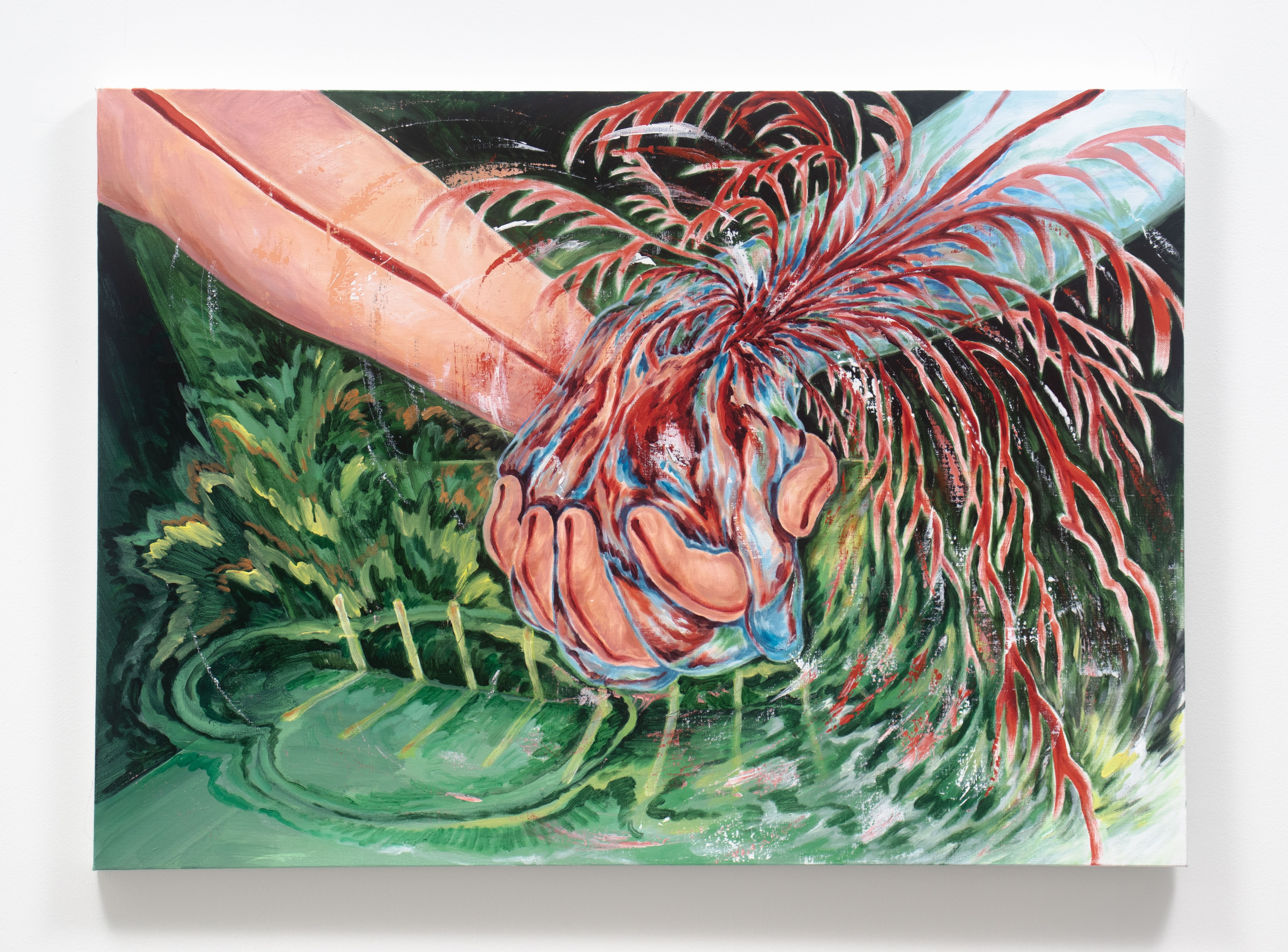 정혜린, 〈생명을 나누는 방법〉, 2024, 캔버스에 아크릴, 65.1 x 90.9cm × 59.69 cm