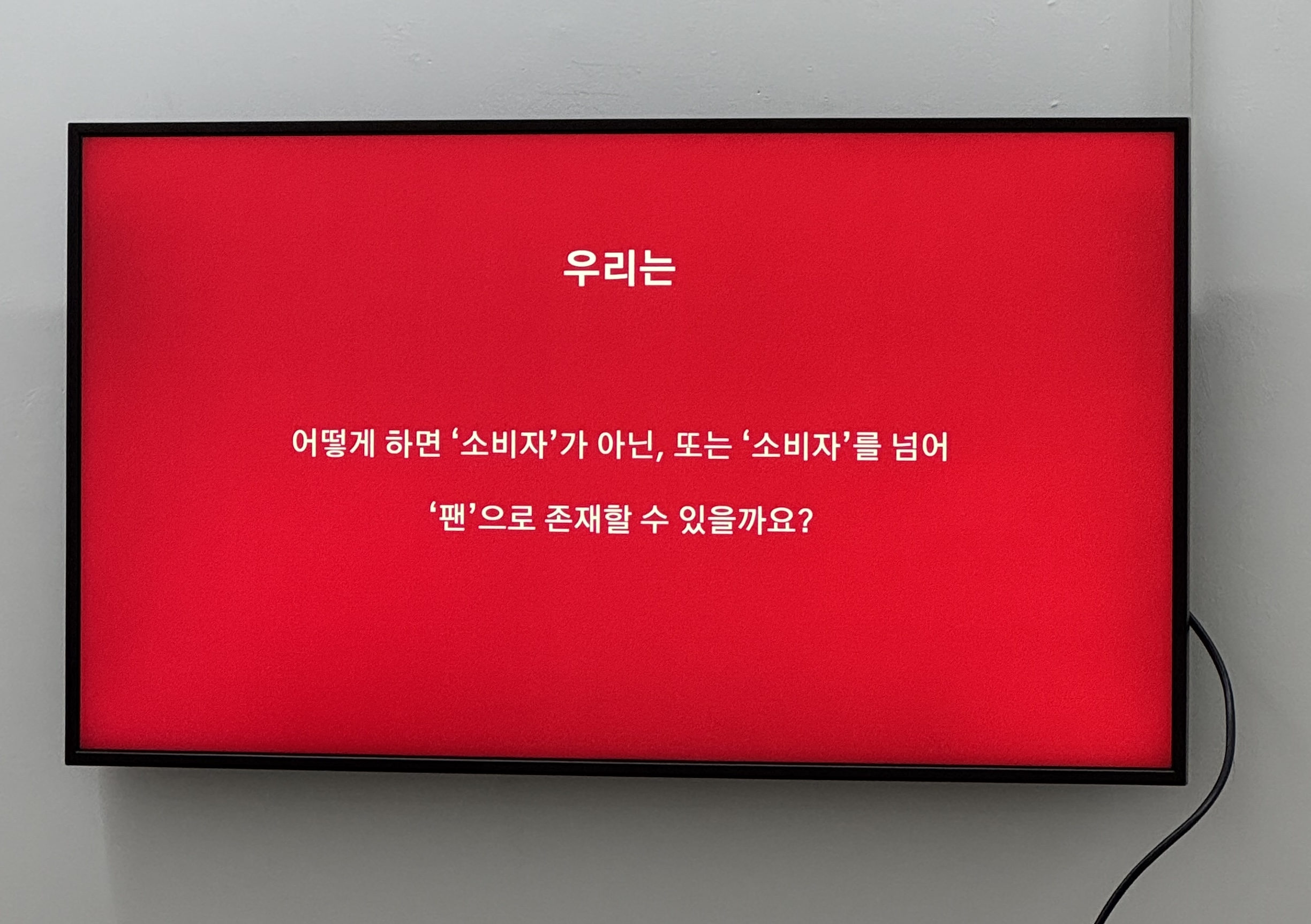 우리는 아이돌을 어떻게 ‘응원’하면서 동시에 ‘사랑’할 수 있을까요? 내가 선택해 온 사랑의 방식이 소비주의에 기대있거나 의도치 않게 아이돌의 노동과 소진을 전제로 하고 있다면, 그와는 다른 사랑의 가능성도 상상해 볼 수 있을까요? 이러한 고민을 출발점으로 삼아, 사랑의 형태를 감각하고 탐구할 수 있는 질문들을 제안했습니다.