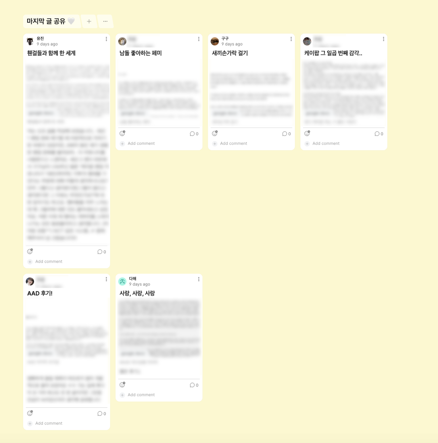 그럼에도 불구하고 용기 있게 사랑을 하는 여자들이 있습니다. 케이팝 세계 속에서 문제들은 마치 지뢰처럼 산재해 있지만, 이 구조 속에서 지속 가능한 사랑을 좇는 것은 용기가 필요한 일입니다. 8주 간의 워크숍은 어떤 문제를 해결하는 시간이기보다는, 더 크고 복잡한 물음표를 만들어 내는 시간이었을지도 모릅니다. 그럼에도 이곳에서 용기 있게 사랑하고 물음표를 던지는 여자들에게 무한한 응원을 보내며 글을 마칩니다.