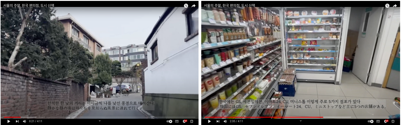 걷는연필 ’서울의 주말, 한국 편의점, 도시 산책’ 영상 일부