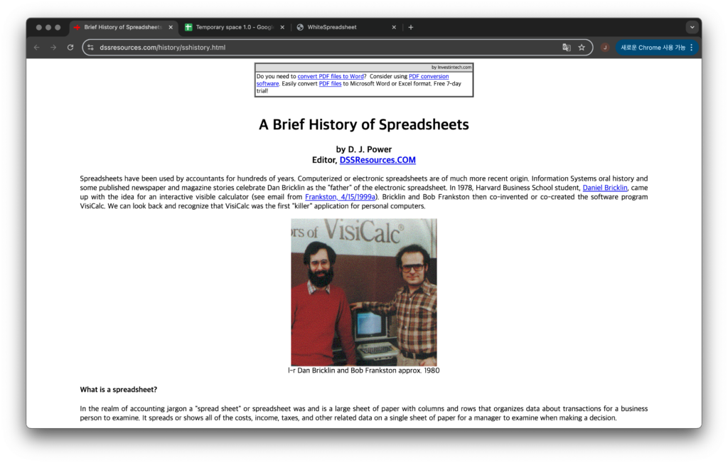 여기 “스프레드시트의 간략한 역사“를 정리한 웹사이트가 있습니다.
