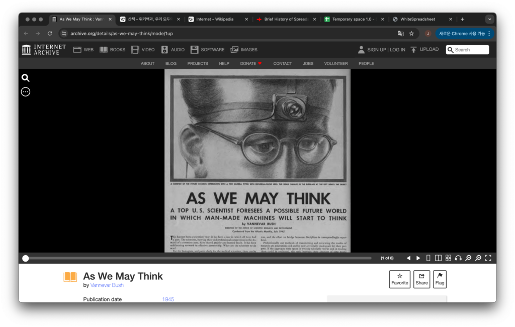 인터넷에 대한 이론적 토대가 된 논문으로, 1945년 과학자 Vannevar Bush가 집필했습니다.