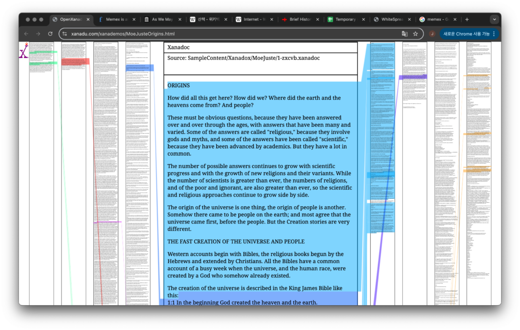 링크로 연결된 텍스트, 하이퍼 텍스트라는 말을 창안한 Ted Nelson의 프로젝트입니다.