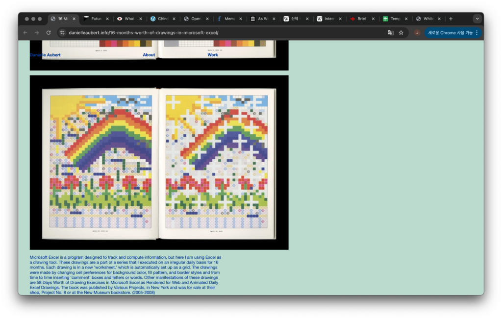 그래픽 디자이너 Danielle Aubert가 16개월 동안 마이크로소프트 엑셀을 그리기 도구로 삼아 그린 그림을 모아 출판한 책입니다.