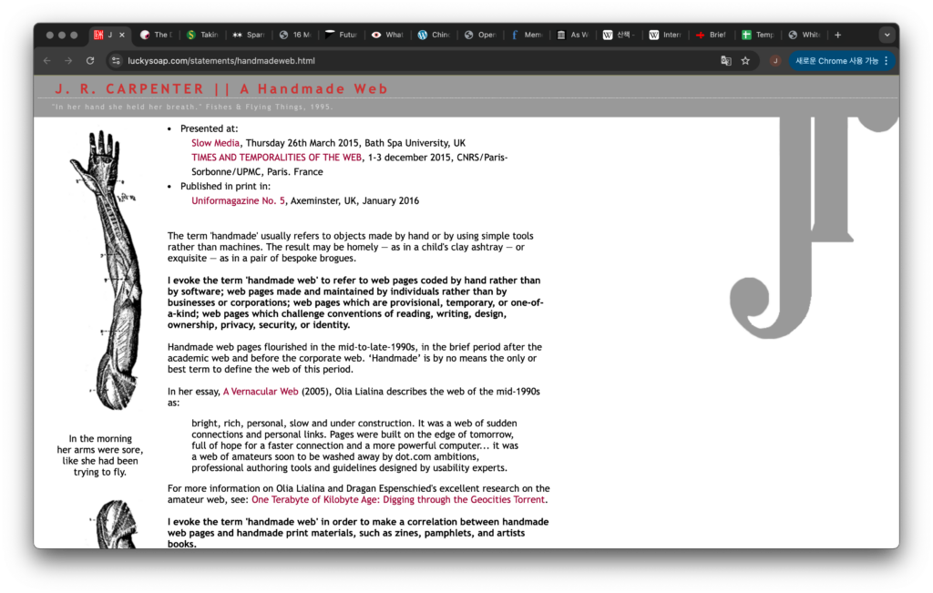넷 아티스트이자 윈체스터 스쿨 오브 아트의 교수인 J. R. Carpenter의 글입니다.