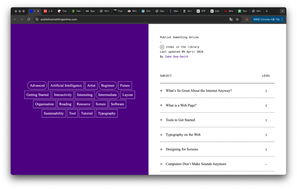 디자인, 프로그래밍 스튜디오를 운영하고 있는 Jake Dow Smith의 온라인 도서관입니다.