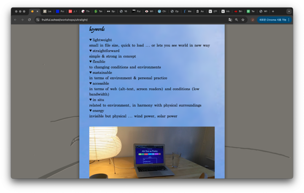 워크숍에서 실라버스로 압축하여 제시했던 호스트의 배움과 발견의 과정을 문서와 문서를 연결하는 하이퍼링크로 다시 펼쳐 웹에 배포합니다.
