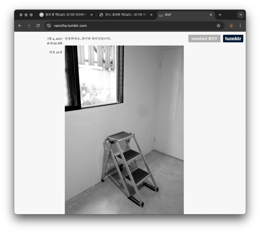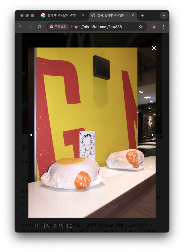 예를 들어, 《방과 후 맥도날드》의 경우, 외대 정문 앞 맥도날드 내부 테이블에 작품을 설치한 전시로 전시의 이동성이 대폭 증가한 것을 볼 수 있습니다.