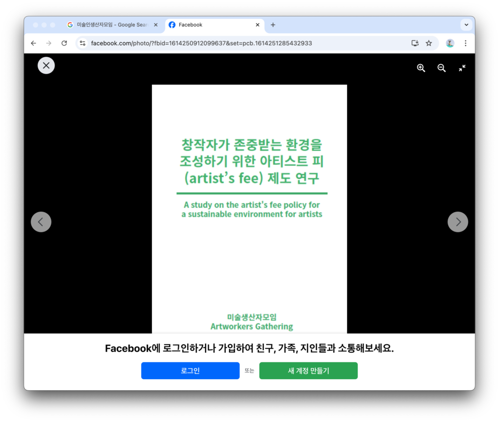 예를 들어 미술인 생산자 모임의 경우, 2010년대에 아티스트와 큐레이터가 모여 여기저기서 공유된 문제와 우리에게 필요한 것에 대한 이야기를 모아, 아티스트 피, 여성, 장애인, 퀴어 소수자 인권, 성폭력 문제 등에 대해 논의하고 해결책을 찾고자 했습니다.