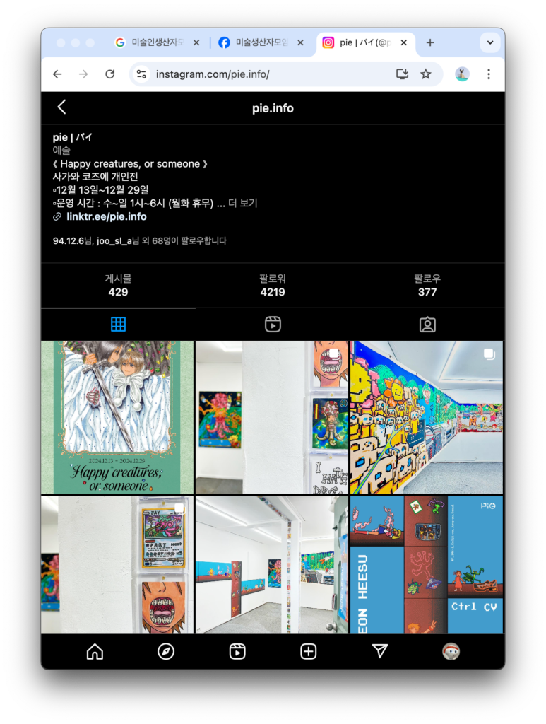 미술 씬 안에서는 파이의 경우, 서브 컬쳐 기반의 작업만을 전시합니다.
