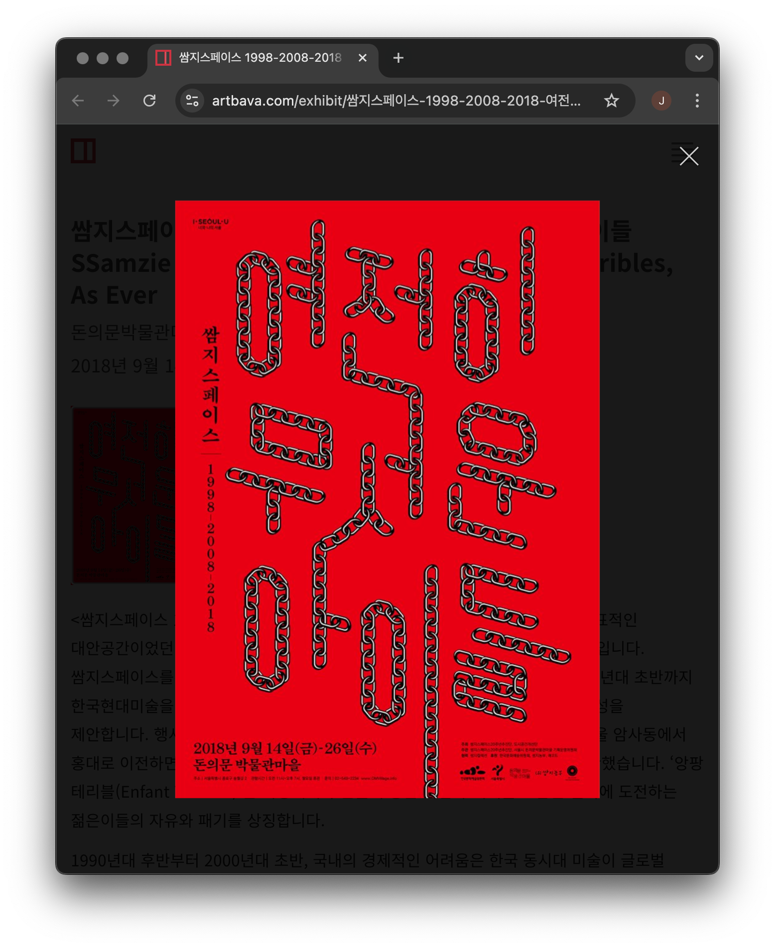 미술은 계속해서 변화하기 때문에 특정적으로 단정하기 어렵습니다. 하지만 한국의 미술 씬 안에서 미술의 윤곽이 어떻게 움직이며 변화했고 가시화 되었는지 살펴볼 수 있습니다.