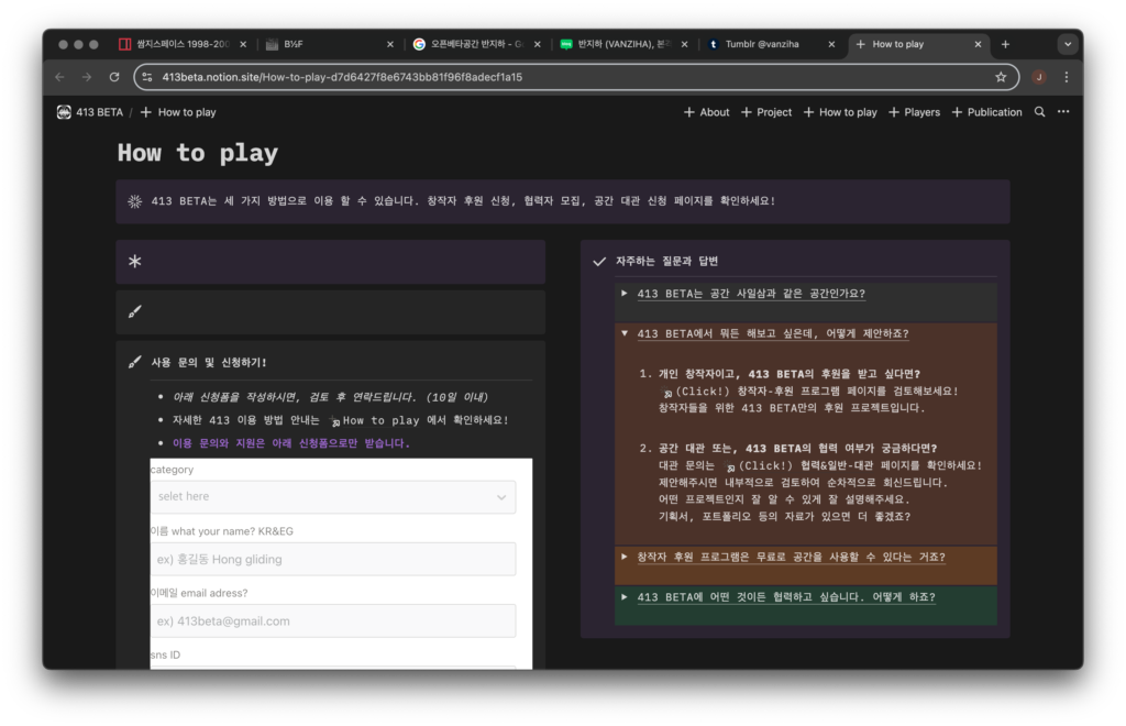 413 BETA를 사용할 수 있는 모든 정보를 기입해놓은 웹사이트이자 노션 대시보드 입니다.