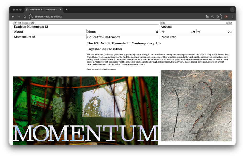 “Network THE OVEN은 23년 6월 노르웨이 모스의 옐로이섬에서 개최된 비엔날레 Momentum 12: together as to gather 에서 시작되었습니다. 비엔날레 감독 Tenthaus는 비엔날레의 부제 ‘together as to gather’의 의미를 조직 방식에도 적용했으며, 참여자들이 비엔날레 주최 측과 예술가들과 교류하며 자연스럽게 자신의 역할과 결과물을 규정하길 바랐습니다.