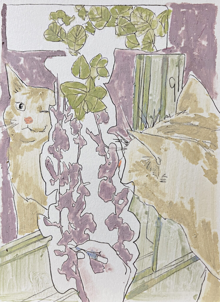 주변 이미지들을 수집하고 서사나 비하인드스토리에서 추출할 수 있는 시각적 요소들을 바탕으로 그림을 그립니다. 이미지를 그림으로 가져오는 과정에서 감정이나 서사가 회화적 선택에 끼치는 영향에 대해 관심이 있습니다.