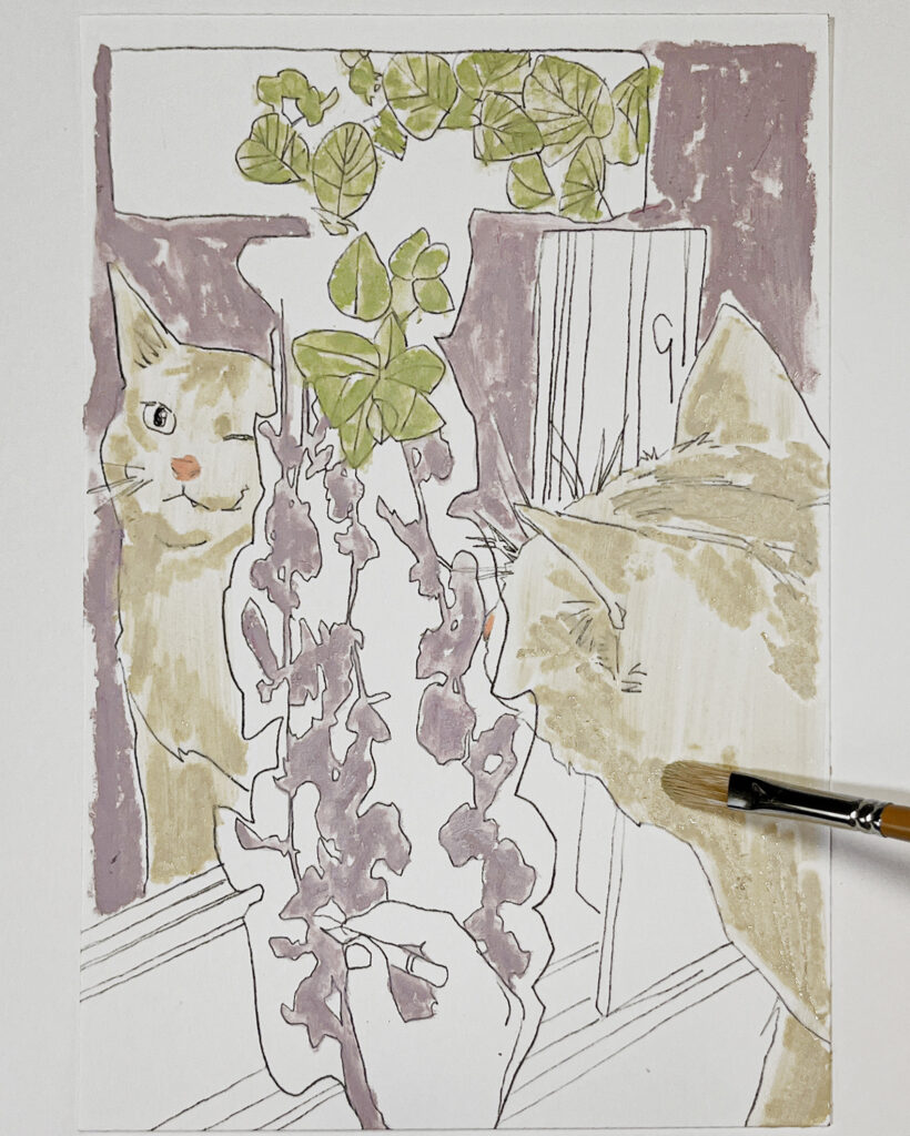 주변 이미지들을 수집하고 서사나 비하인드스토리에서 추출할 수 있는 시각적 요소들을 바탕으로 그림을 그립니다. 이미지를 그림으로 가져오는 과정에서 감정이나 서사가 회화적 선택에 끼치는 영향에 대해 관심이 있습니다.