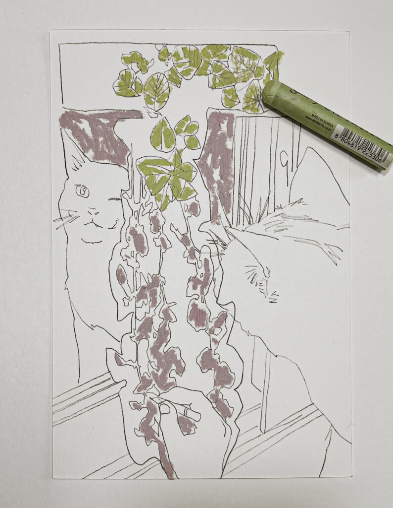 1회차에서 구성한 드로잉 에스키스와 배송받은 드로잉 키트를 활용해서 그림을 그려 봅니다. 완성된 그림을 서로 공유하며 1회차에서 이미지를 선택한 이유와 지금의 느낌을 비교해서 대화를 나누어 봅니다.
