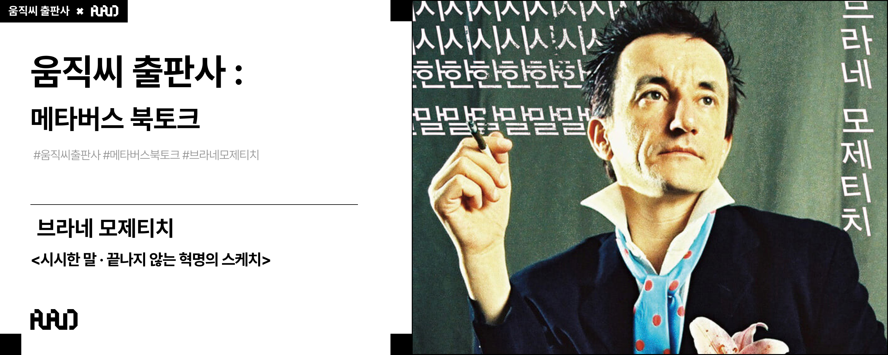 브라네 모제티치와와 함께 시와 문학, 다양한 경험을 소통하고 싶은 여러분을 『시시한 말 · 끝나지 않는 혁명의 스케치』 메타버스 북토크에 초대합니다.