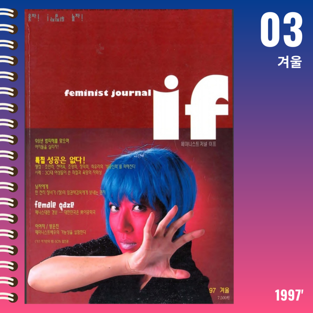 if이프는 1997년에 창간, 2006년에 완간한 대한민국 최초 페미니스트 저널 계간지로 총 36권이 발행되었습니다.