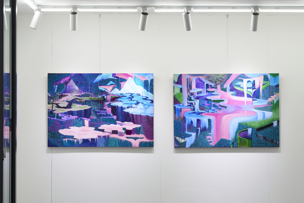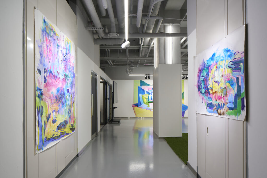 그 덕에 관객은 보이는 화면, 넘어선 공간에서의 회화, 내가 감상을 위해 걷고 있는 공간을 추상적인 하나의 세계로, 촉각적으로 경험합니다. 물리적 공간과 상상 공간, 캔버스와 그 너머의 실제 공간, 그 세계를 오가는 유희 속에서 당신의 걸음은 색이 되고 그 공간은 빛으로 물들어 당신의 삶을 채우길 바라봅니다.