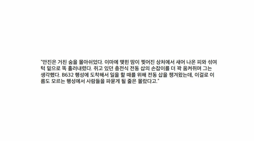 박해울_다음 할 일 ( )_텍스트, 설치, 2023, 소설 일부 발췌
