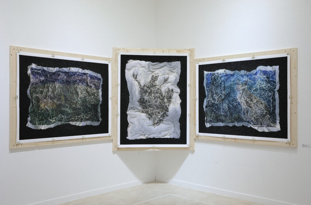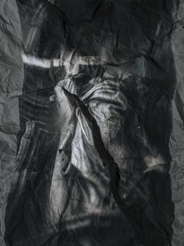 04.Deconstruction of Idols ; Religion #016, Digital Inkjet Pigment Print(Taking the light of a beam project on crumpled Paper), 120 x 89.77cm, 2018