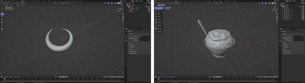 ① 3D프로그램(BLENDER, C4D)을 활용하여 3D 툴 사용법, 기초 모델링을 배웁니다.