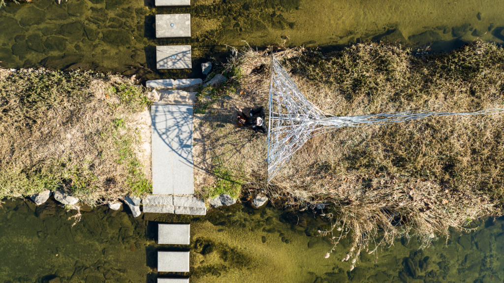 도시계획의 일환으로 직강화된 당현천과 작품이 설치되는 당현천 내 인공섬은 인간의 휴식과 편의, 감상을 위해 조성된 환경입니다. 그럼에도 42종의 조류, 16종의 어류, 114종의 식생 뿐만 아니라 수달이 출현하는 곳이기도 합니다. 본 작품들은 우리 곁에 존재하지만 잊혀져있던 비인간 존재들과의 공생을 인식시킵니다. 이를 통해 기후위기 시대 도시와 생태계 간의 분절된 연결성을 회복하기 위한 감수성과 대안적 관점을 담아냅니다.