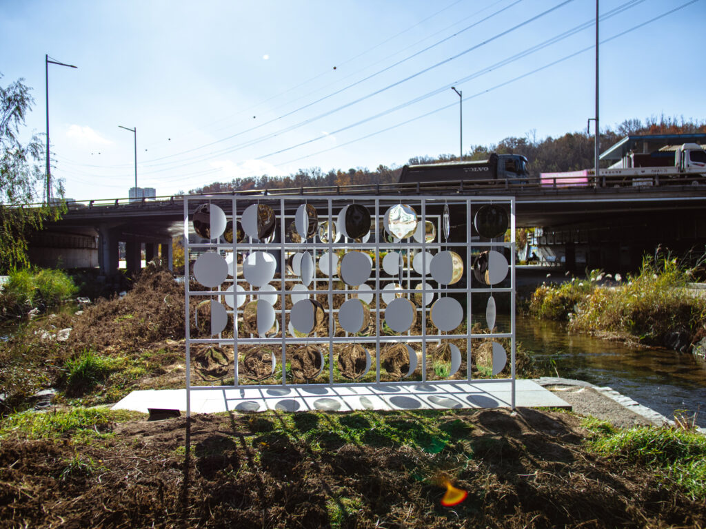 조재영 작가의 〈Future Nomade〉는 여성과 우주생명의 근원을 상징하는 달의 변화와 움직임을 입체적으로 표현하고 다양한 생명체의 서식지이기도 한 당현천의 장소성을 내포한 작품입니다.