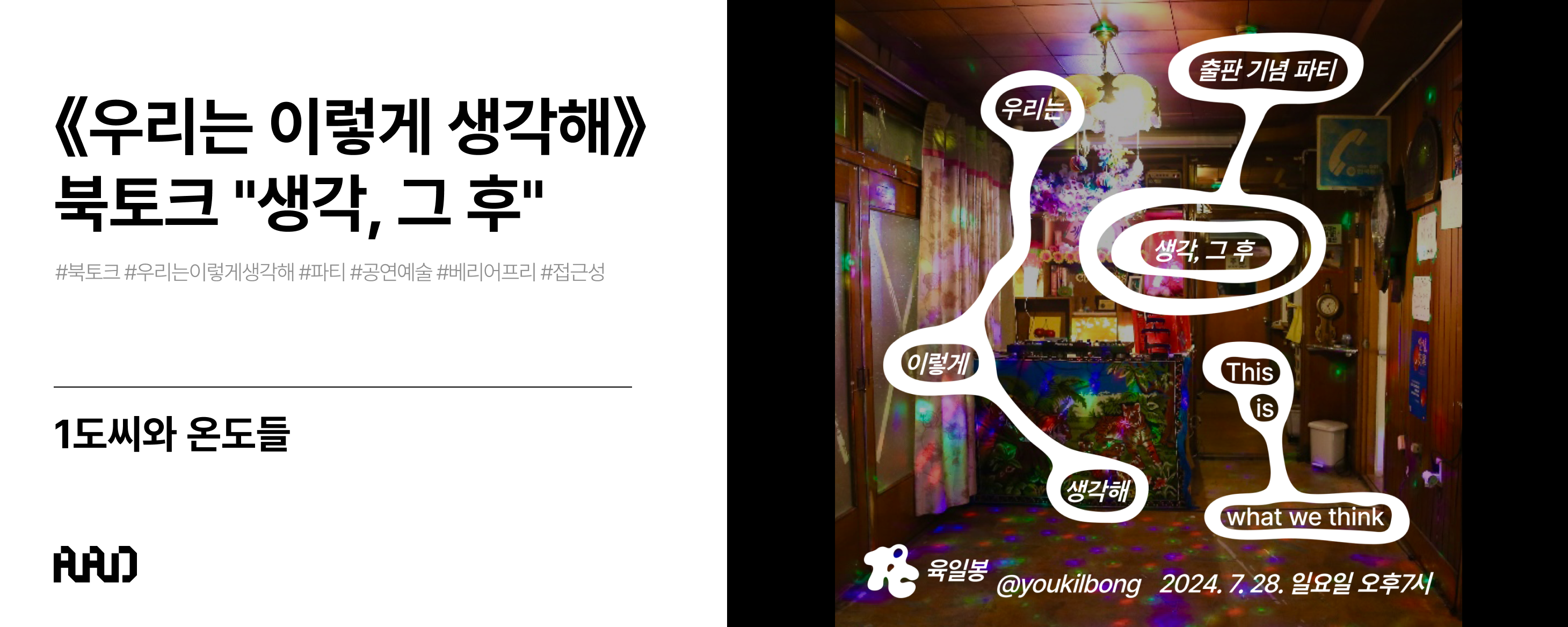 - 문답식의 북토크가 아닌 참여자 모두 자유로이 발언하는 형식이니 가벼운 마음으로 와주세요.